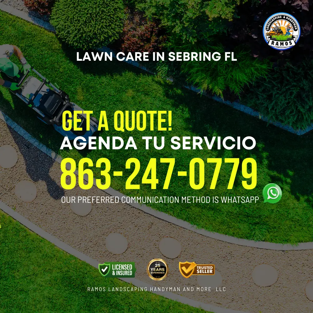 Looking for affordable and reliable lawn mowing in Sebring, Florida? Ramos Landscaping Handyman and More LLC is trusted by homeowners throughout Highlands County. We provide punctual, professional lawn care with flexible service plans: weekly, biweekly, or monthly. Our team shows up on time, gets the job done right, and leaves your yard looking clean and sharp—every time.